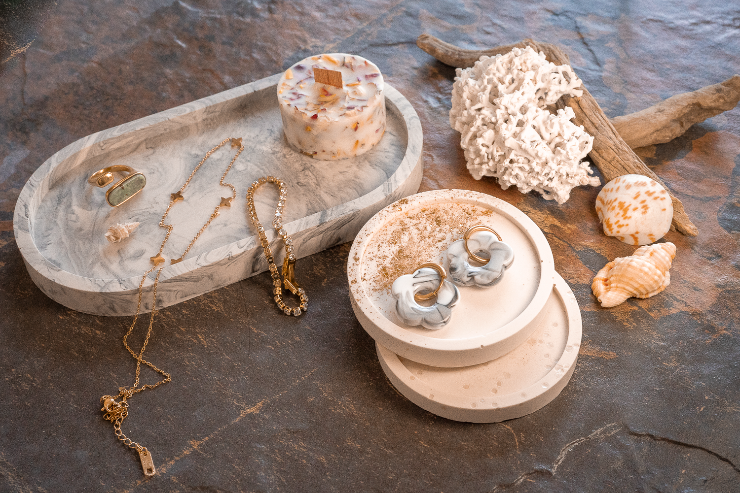En complément de nos bijoux en acier inoxydable, venez explorer nos créations en Jesmonite. Bien plus, qu'un simple élément décoratif, elles apportent une touche moderne et élégante à votre intérieur.