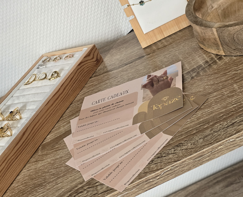 Offrez à vos proches la liberté de choisir parmi notre vaste collection de bijoux en acier inoxydable. Que ce soit pour un anniversaire, une occasion spéciale ou simplement pour montrer votre affection; notre carte-cadeau personnalisable permet à chacun de trouver le bijou qui lui correspond parfaitement.